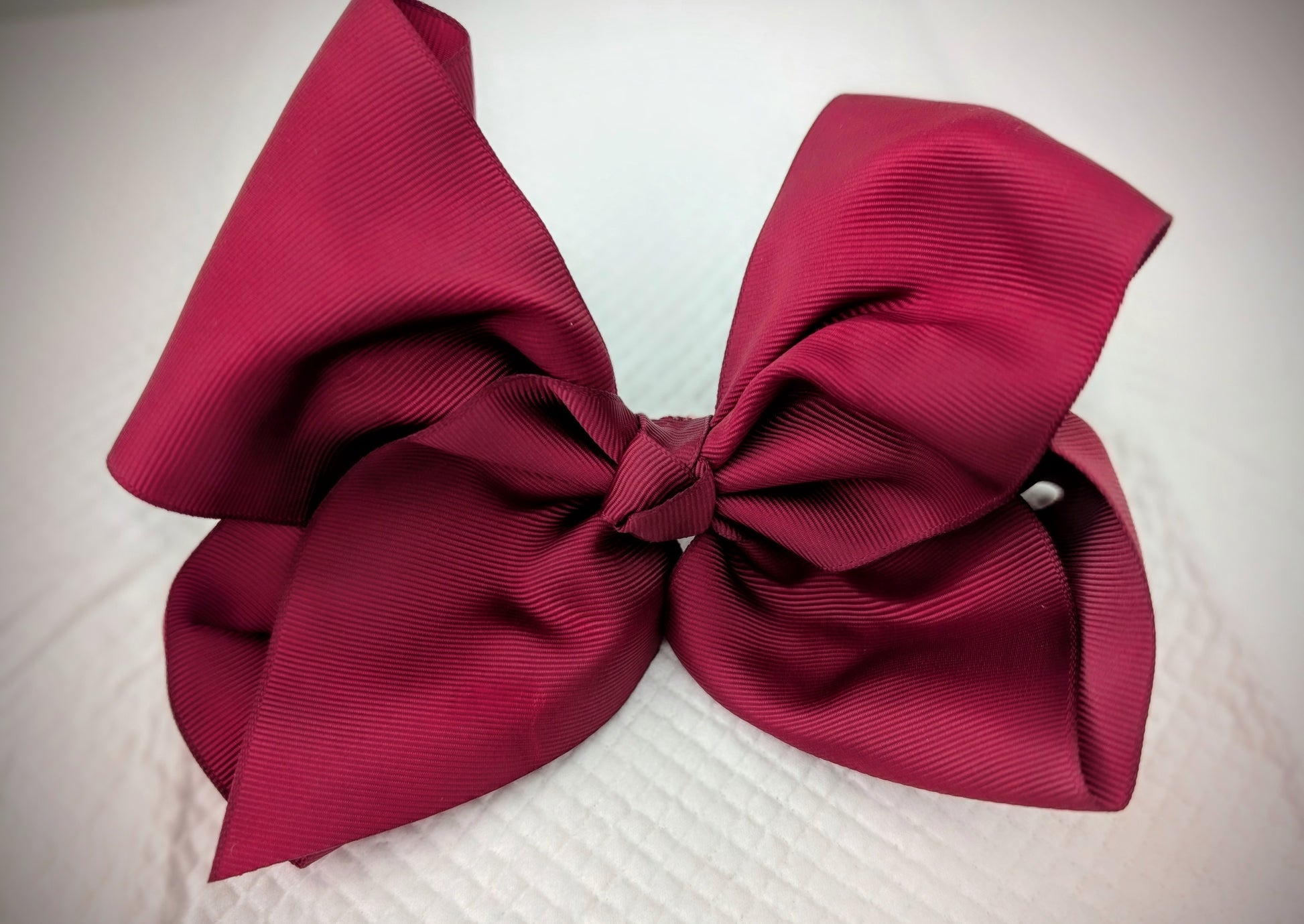A bold and beautiful large hairbow in rich burgundy red. Classic, eye-catching, and perfect for adding a touch of elegance to any outfit.
