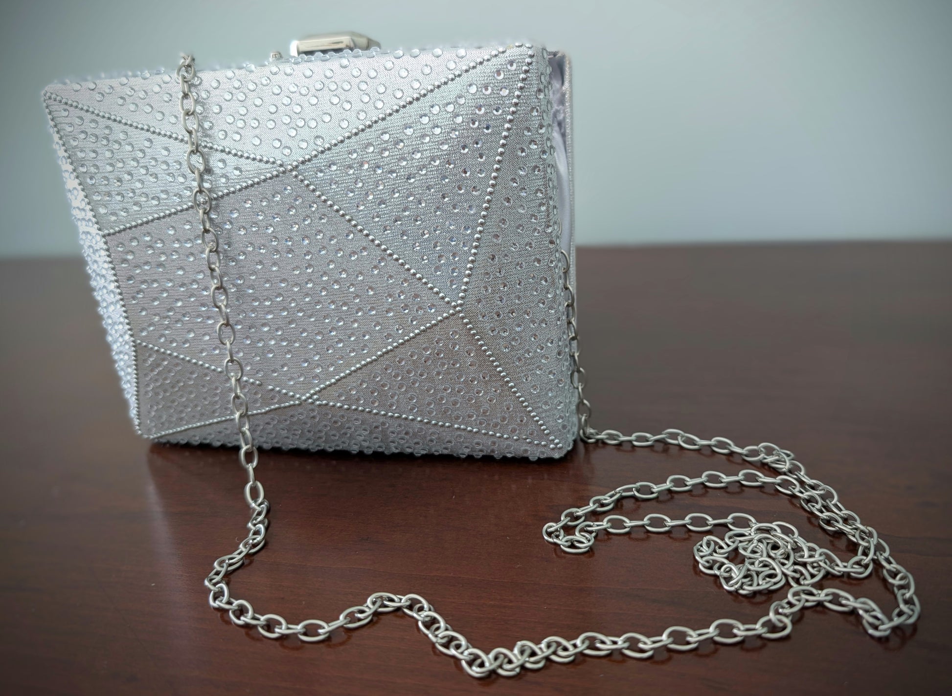 Silver Studded Clutch with Chain Strap